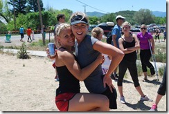 After some shuffling we decided to switch a few legs. Chels took my leg like a champ. –> Chelsea just qualified for BOSTON! Woot!